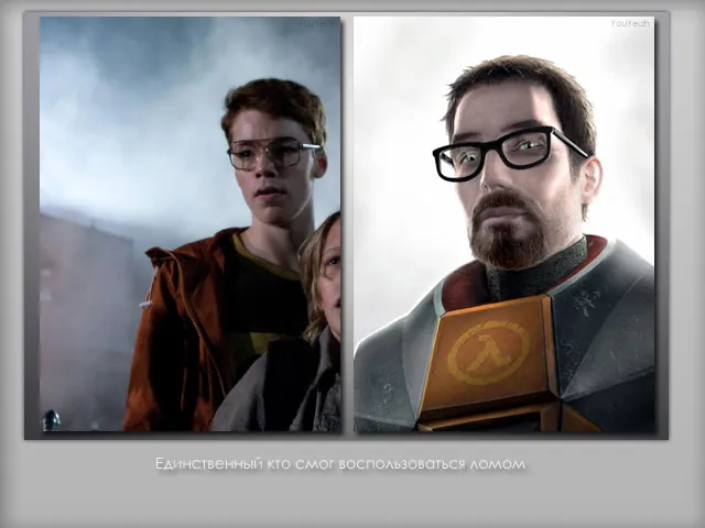 В фильме был момент, когда молодеж вскрывала фургон учителя биологии ломом, удивительно то что только один из мальцов смог им воспользоватся, а именно парень похожий на Гордона Фримена. В фильме он немного труслив, и не разговорчив. Возможно после этих событий он переборол себя, выучился и стал работать в Блек Месса?