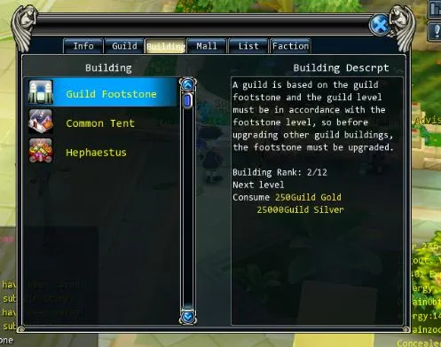 Основное здание - Guild Footstone. Его уровень определяет уровень гильдии и максимально возможный уровень других зданий.