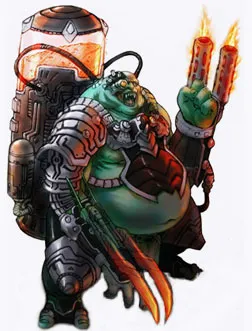 Согласно отчетам, предоставленным выжившими после столкновения с Дагоном, нам известно следующее - данная тварь не является совмещением живой плоти и механизмов - она облачена в силовой костюм. Костюм позволяет ей нести огнеметную установку, которая использует смесь схожую с прометиумом. Эта смесь обладает огромной прожигающей силой - многие из отважных воинов Беллато погибли, оказавшись в зоне поражения огнемета. Выжившие получили многочисленные и опаснейшие ожоги, шрамы от которых останутся у них на всю жизнь. В ближнем бою Дагон использует энергетические когти. Судя по наблюдениям за тварью - она является слепой, однако исскуственная зрительная ячейка укрепленная на черепе, позволяет ей достаточно эффективно компенсировать отсутствие зрения.