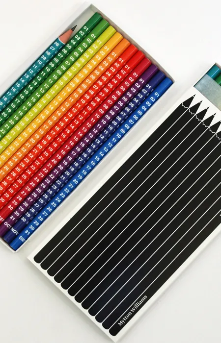 В наборе 12 карандашей - по одному на один месяц, разных цветов, с нанесенными датами и днями недели. Такой календарь подойдёт тем, кто много рисует или пишет, так как каждый день будет "стачиваться" очередное число.
