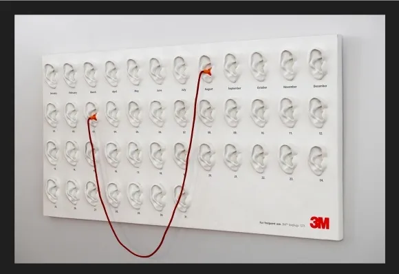 Каждый месяц и день в этом календаре представлены в виде уха. Чтобы выставить текущую дату, требуется соединить с помощью "наушников" ухо с названием месяца и ухо с числом.