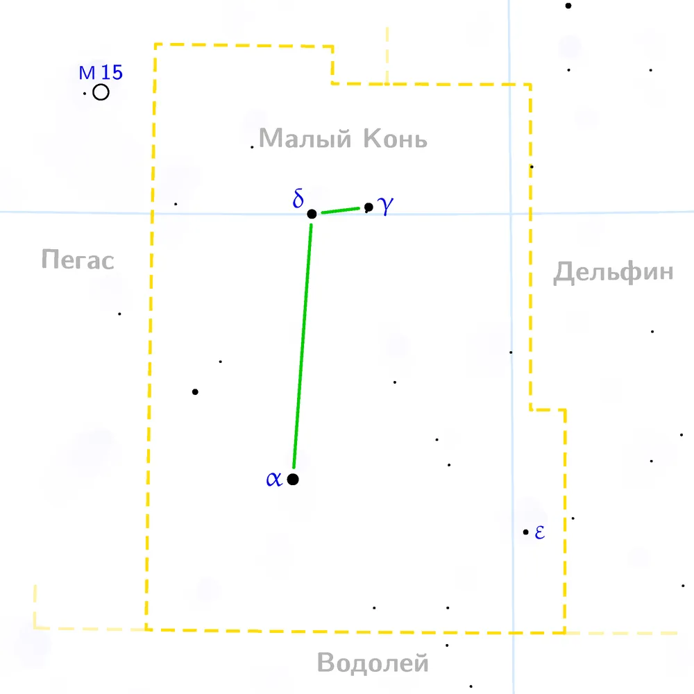 Относится к древним созвездиям. По одной из версий персонажем, в честь которого оно и названо, послужила Гиппа, которую Посейдон обратил в лошадь, дабы сокрыть беременность от отца. Впоследствии именно в этом образе она и была увековечена на небосклоне. Другой версией является конь Килар, брат Пегаса, в пользу этой версии близкое размещение созвездий на небосклоне. Это компактное и малочисленное созвездие не содержит особо ярких объектов. Однако просматривается со всей территории России преимущественно в самом конце летнего периода.