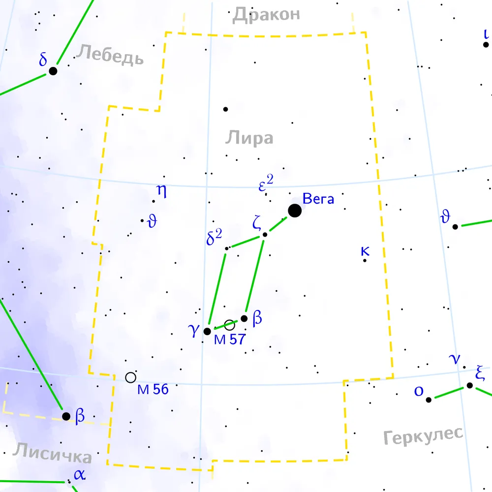 Относится к древним созвездиям. Сама по себе лира являлась довольно популярным инструментом среди древнегреческих музыкантов, в том числе и весьма известных, как то Орфей, Аполлон и другие. Изображение самой лиры в виде коршуна связано с тем, что в переводе с арабского наименование наиболее яркой звезды данного скопления – Веги означает коршуна. Без особых проблем можно наблюдать со всей территории России круглогодично, но лучше всего с конца весны до конца осени.