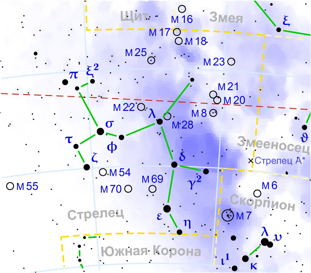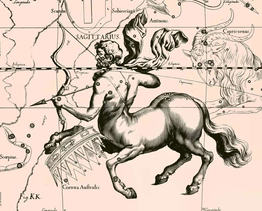 Одно из зодиакальных созвездий, по форме изображаемого в виде кентавра с луком. Претендентов, в честь кого названо созвездие двое. Один из них Хирон, считавшийся создателем небесного глобуса, предназначенного, в том числе и для аргонавтов, а место на небосводе он предусмотрительно зарезервировал для себя. Второй претендент кентавр Крот, который оказался проворнее и смог занять место Хирона, которому в свою очередь пришлось удовлетвориться другим созвездием – Центавра. С территории России можно наблюдать только из южных и частично центральных областей. Лучшие условия для наблюдения в начале – середине лета.