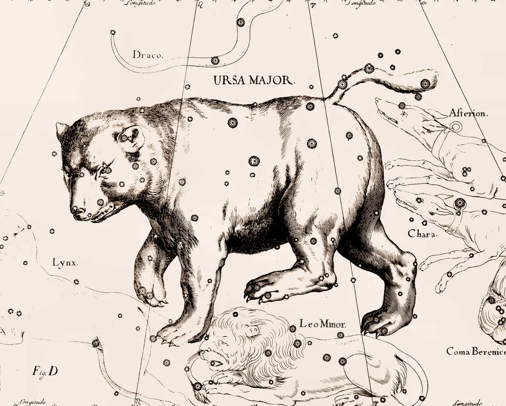 Принадлежит к древним созвездиям. Одна из версий о персонаже, который послужил прототипом для созвездия, уже упоминалась ранее (созвездие «Волопас»). По другой версии тот же Зевс, ещё во младенчестве обратил в медведиц двух нимф и для защиты перенёс их на небосклон. Наверняка мало кто не видел на звёздном небе знаменитый «Большой ковш», принадлежащий данному созвездию, которое просматривается со всей территории России, лучше всего в начале – середине весны.