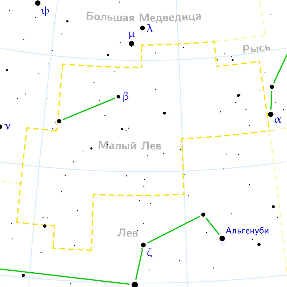 Одно из зодиакальных созвездий. Название связывают с одним из подвигов Геркулеса, когда он смог одолеть Немейское чудовище. К тому же по расположению ключевых звёзд четко просматривается силуэт лежащего льва. Самая яркая звезда – Регул. Просматривается со всей территории России преимущественно в самом конце зимы – начале весны.