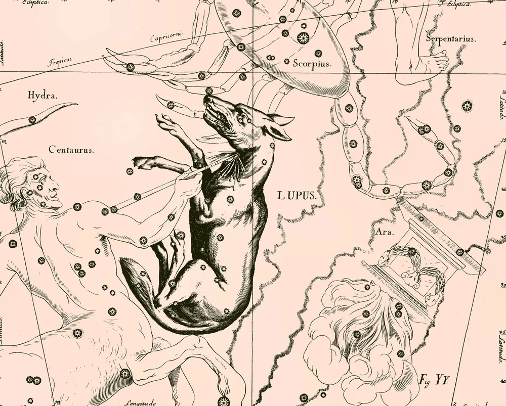 Относится к древним созвездиям. Чаще всего связывают его с Ликаоном, которого Зевс обратил в волка за его страшные преступления – человеческие жертвоприношения. Впрочем, по некоторым версиям это был обычный волк, принесённый в жертву богам, а потому иногда это созвездие изображают как насаженного на копье Центавра зверя. Поскольку это созвездие находится на южном небосводе, с территории России можно увидеть только его малую часть, да и то, находясь в самых южных уголках нашей страны.