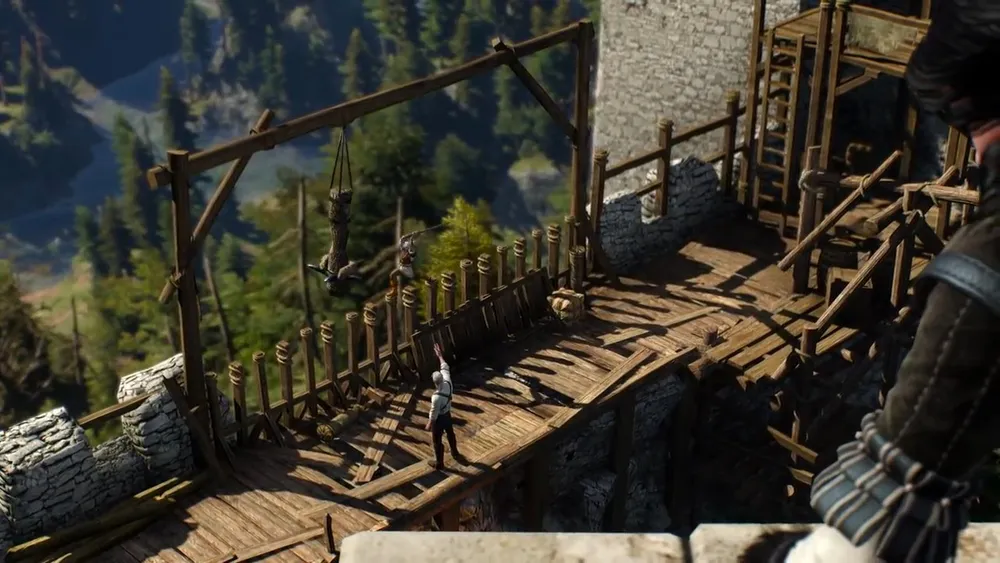 ● Перейдем к рассмотрению основной сюжетной линии. После двух игр без Йеннифэр, нам, наконец, показывают ее в Каэр Морхен как персонажа из сна Геральта, с которого и начинается игра. Благодаря той сцене, мы получаем первое представление о Йеннифэр. Оказывается, она носит только черное и белое, пользуется духами с ароматом сирени и крыжовника, любит яблочный сок [скорее, яблочный сок – это не указание на пищевые пристрастия Йен, а пасхалка, отсылка к первой встрече ведьмака и чародейки, описанной в рассказе «Последнее желание». – Прим. перев.] и т.д. Все это хорошо, поскольку игроков, которые не читали книг, нужно с ней познакомить. Жаль лишь, что CD Projekt не смогли поддержать развитие этого «процесса знакомства» в дальнейшем. Впрочем, начало меня вполне бы устроило, если бы не одна маленькая деталь, которая бросилась мне в глаза. В релизном трейлере «Иди своим Путем» нам показывают Йеннифэр. Она улыбается, наблюдая с балкона за тем, как Геральт тренирует Цири. По каким-то причинам CD Projekt решили не включать данный катсцену в финальную версию игры, тем самым лишив нас возможности увидеть первую «семейную» сцену с участием Геральта, Йеннифэр и Цири. К сожалению, эта непонятная тенденция постоянно оставлять за пределами семейного круга именно Йеннифэр сохранится на протяжении всей игры. Почему CD Projekt решили так сделать? Могу предположить лишь одно. Возможно, им было не с руки представлять Геральта, Йеннифэр и Цири как одну семью, потому что это было бы прямым следованием собственно книжной истории. А может быть, они не хотели показывать лицо Йеннифэр, озаренное милой материнской улыбкой, так как в тот момент она не выглядела холодной и неприветливой. Или, быть может, CD Projekt не желали делать из Трисс разрушительницу семьи в том случае, если игрок предпочтет ее в качестве романтического выбора своего героя.