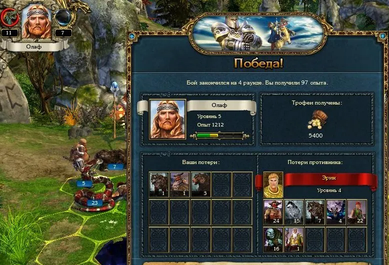 Остаётся добавить, что пополненное войско справилось с Эриком, даже без помощи погибших волхвов: то есть, игру можно пройти без потерь – если победить Уладара.