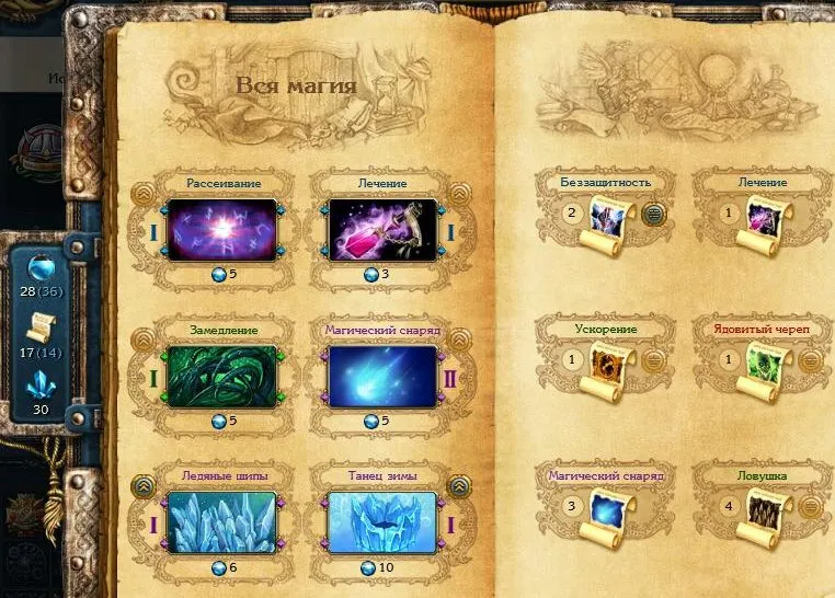 Вновь Владислав удивил и даже пристыдил меня простотой решения «неразрешимой» проблемы… Всего-то и нужно было: скупать все самые мощные магические свитки и в нужный момент взять с собой! ( Опять сыграла дурную роль привычка к предыдущим частям: в них не было проблем с книгой магии, я попросту продавал ненужные свитки с заклинаниями.) Союзники прекрасно выучивают недостающие заклинания своих школ, а остальные зачитываются со свитков. (Если вы получили три уровня «Артефактора», проблем с кристаллами быть не должно.)