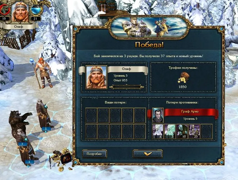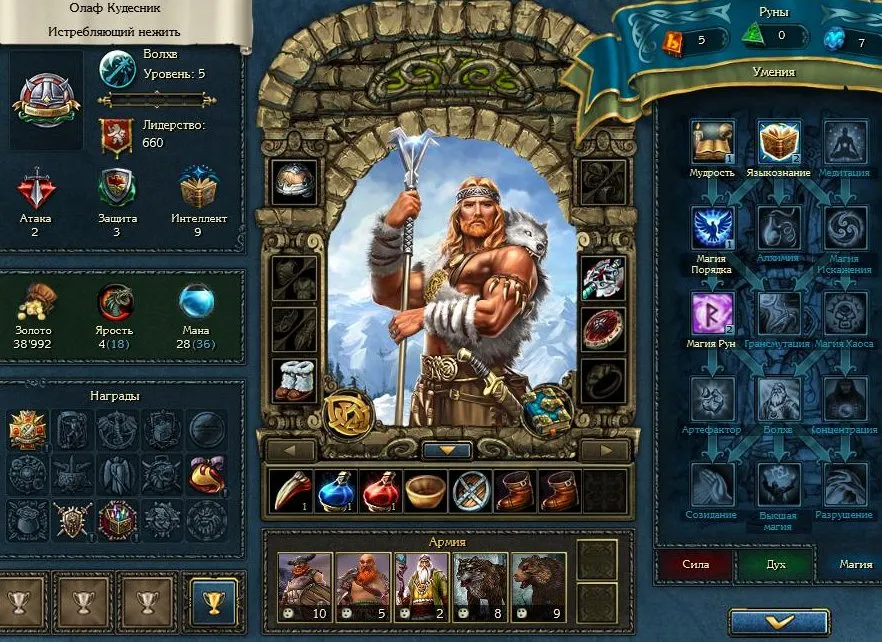 Чтобы не оказаться в подобной ситуации, не вкладывайте руны духа в умения, а накопите их столько, чтобы хватило получить три уровня «Разведки»: это позволит заранее определить состав войск Аримана и решить, стоит ли с ним встречаться в этот раз.