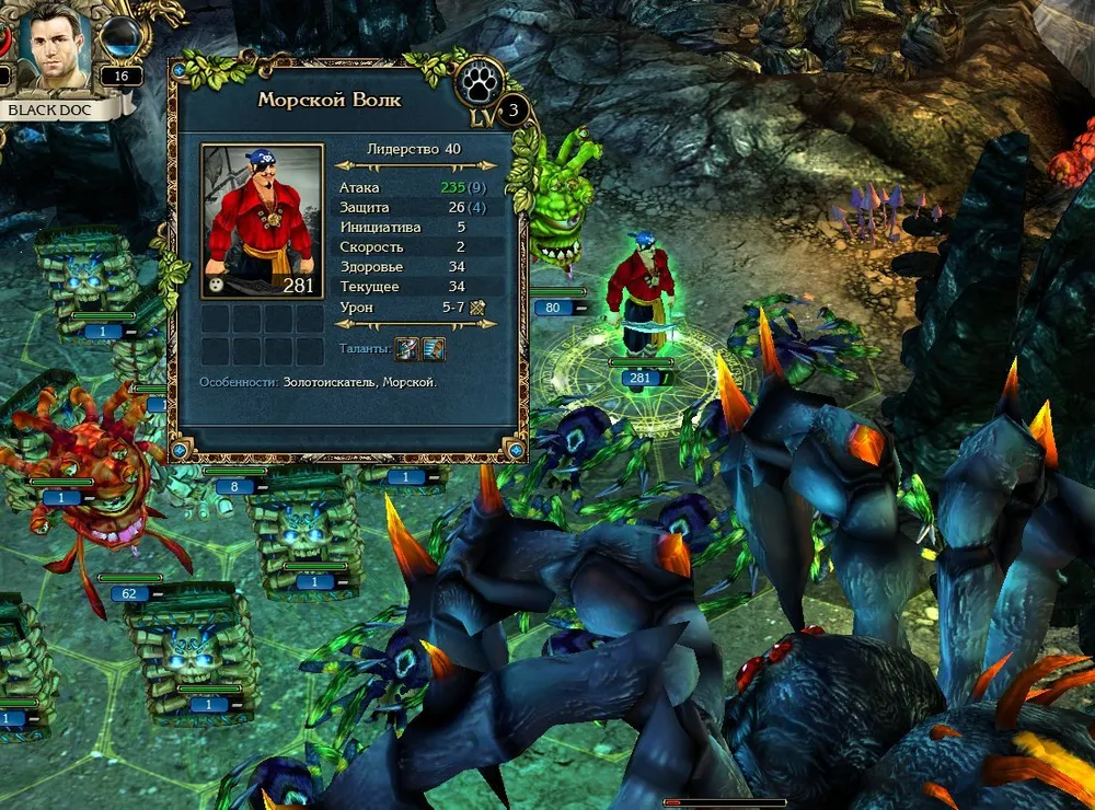 И, напоследок, самый замечательный отряд – Морские Волки. Замечателен он тем, что в игре есть целых три предмета, способных его усилить. Более того, часто два из этих предметов дублируются, и, если герой женатый, но бездетный – эффект от снаряжения становится двойным! Замечательный Пояс Атамана даёт +5 атаки Пиратам и Разбойникам; Ботфорты – плюс один скорости тем же юнитам; ещё +3 к атаке даёт им Пиратский Флаг. В итоге ударная сила Морских Волков достигает от 30 до 50 единиц. Мало кто из тяжёлых юнитов может похвастаться таким результатом. А ведь Морские Волки наносят урон сразу трём вражеским отрядам. Чаще всего они встречаются на Пиратских Островах; нередко – в количестве «много».