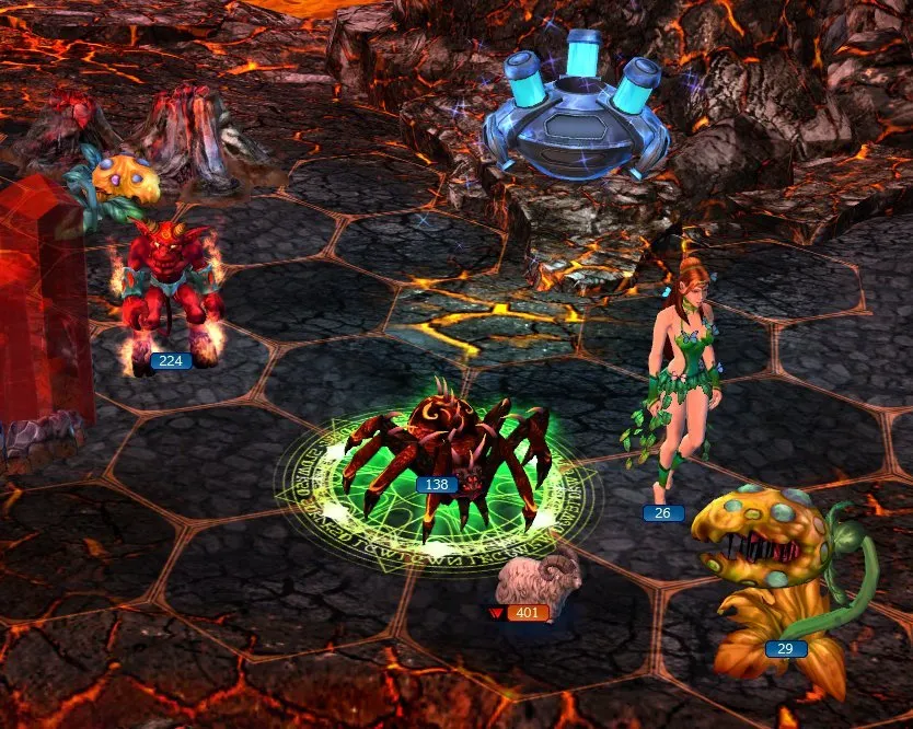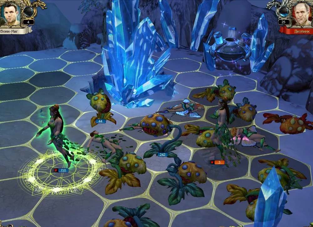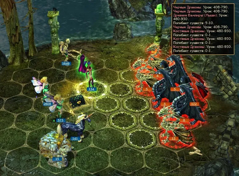 Допустим, что в первом раунде один из ваших отрядов напал на самый опасный вражеский отряд – друидов или некромантов – и нанёс ему урон, но не уничтожил полностью. С помощью Демонесс меняем уже походивший отряд на ещё не ходивший – и добиваем противника.