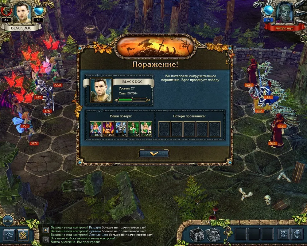 Если ваше войско состоит не только из эльфов, корона постепенно будет выходить из - под контроля. И когда в критический момент на вашего героя один за другим нападут два противника – велик шанс, что, едва начнётся вторая битва – всё войско выйдет из повиновения, и полководцу будет засчитано полное и окончательное поражение, без возвращения в замок.