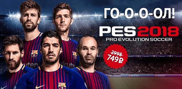 До 1 апреля действует скидка 75% на спортивный симулятор Pro Evolution Soccer 2018, посвящённый футболу!