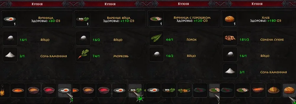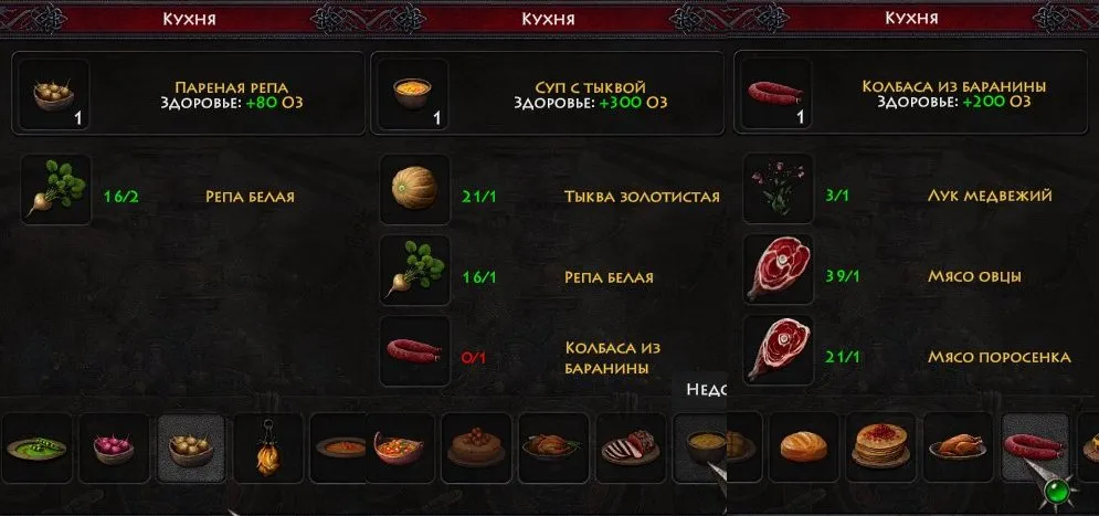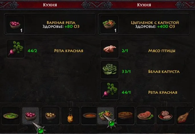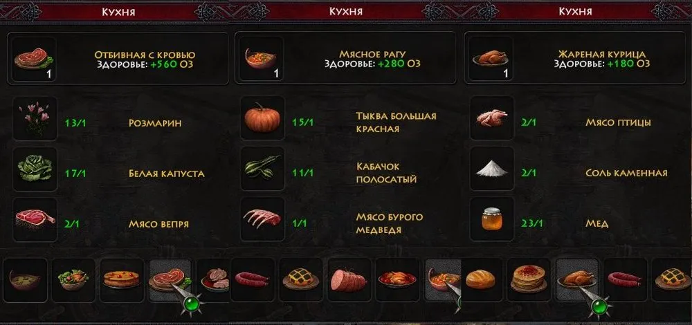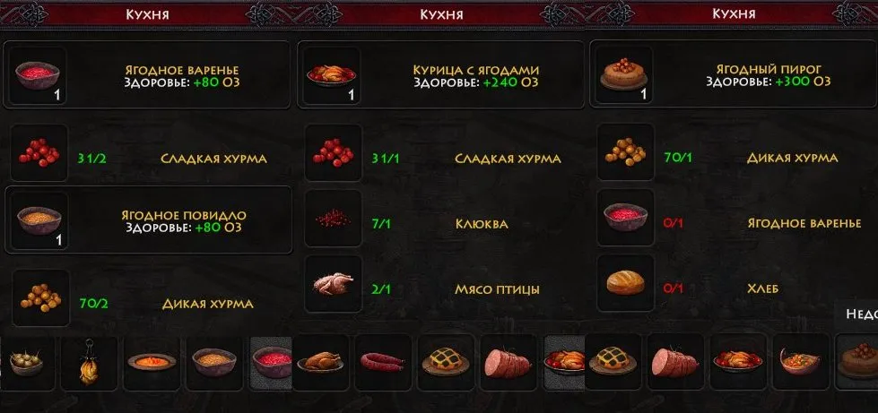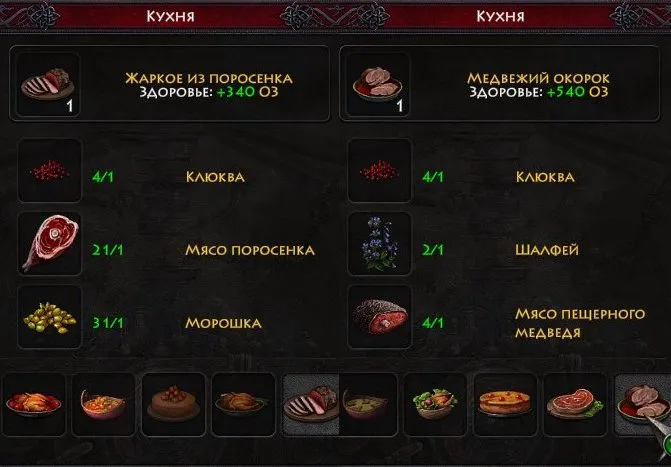 Вот для чего нужна клюква! И только для этих блюд! Конечно же, клюква встречается редко, а мясо пещерного медведя – ещё реже, только в некоторых сундуках под охраной боссов.