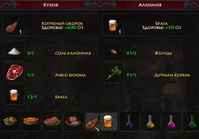 А вы всерьёз полагали, что герой станет побеждать боссов, питаясь «травками»?! Настоящему викингу нужно мясо! Приятного аппетита!