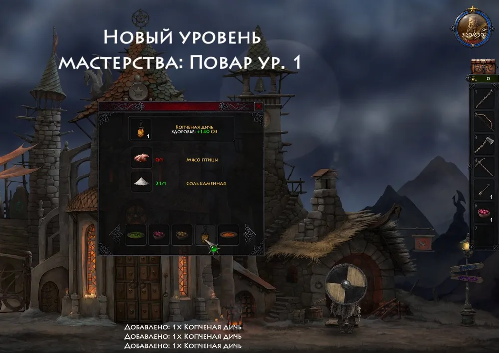 Ну что же, на начальном этапе герою не грозит гибель от голода или ран. Добываем сырьё, улучшаем замок и совершенствуем кухню. Всё готово? Отлично, осталось определить, что именно стоит включить в меню викинга, а какими блюдами лучше пренебречь. Продолжим!