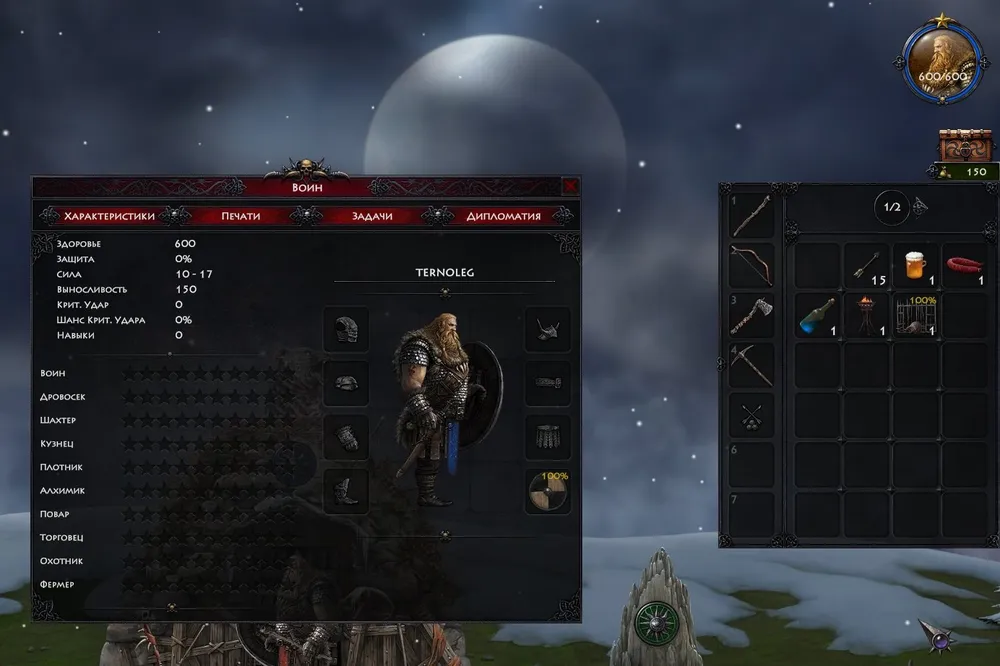 Как обычно, герой начинает свой путь с минимумом снаряжения: ни доспехов, ни приличного оружия, ни укреплённого жилища. Правда, минимум инструментов всё же есть: топор, кирка, плохонький лук с десятком стрел и простейшая ловушка.