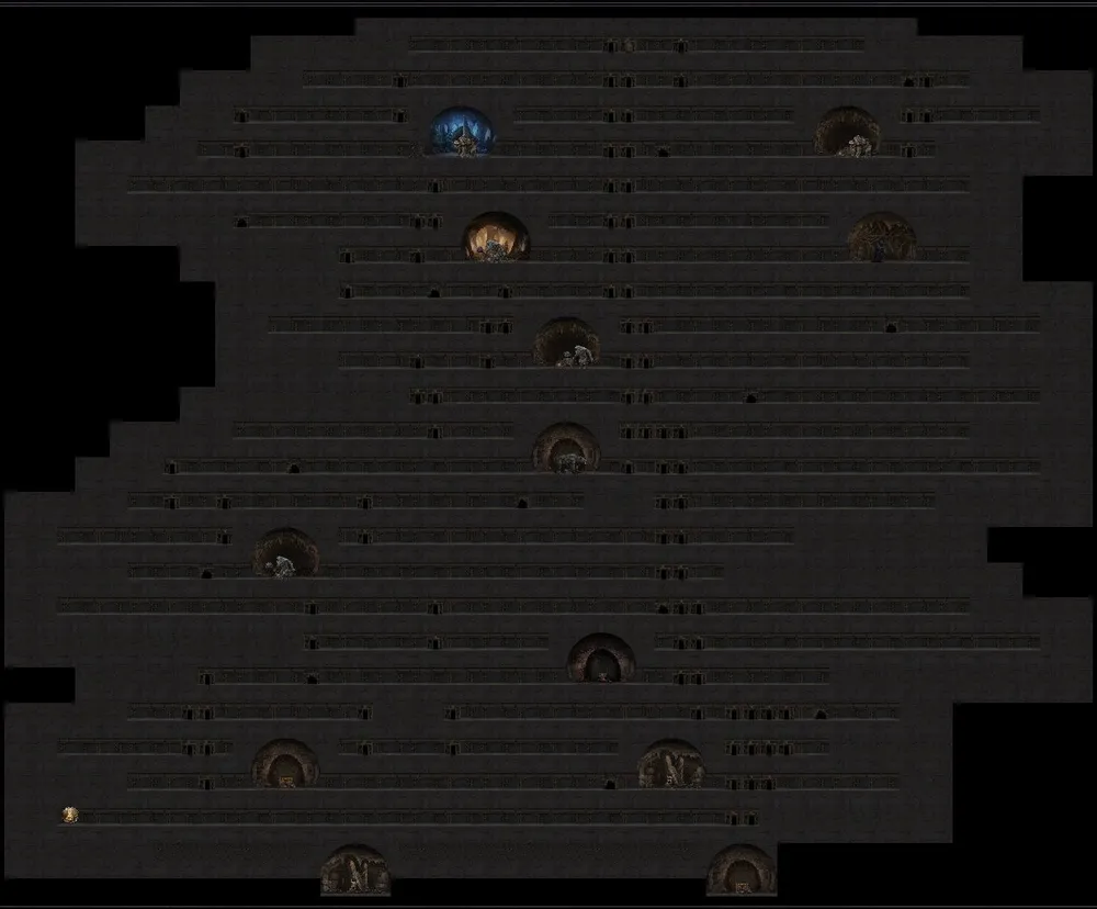 Как же тяжело было работать в шахте год назад! Иногда в ней попадаются полости, где может стоять котёл или идол, обитать жрец, дающий задания, или смертельно опасная тварь, охраняющая сундук с сокровищами. Но попробуйте запомнить, на каком именно уровне вниз засел жрец или тролль! Приходилось чертить карты на бумаге, а важные места в шахтах отмечать светильниками. Однако пожелания тестеров были услышаны: теперь, стоит прорубить очередной спуск с этажа на этаж, как рядом с ним устанавливается табличка с номером уровня. И это ещё не всё: появилась карта штреков! Стало гораздо проще отыскивать короткие, скрытые участки выработок и обнаруживать нужные залы.