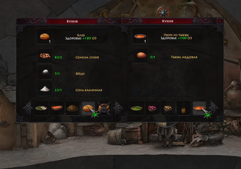 Постепенно у героя будет накапливаться всё больше сырья и ингредиентов, заполнятся все сундуки: ох и придётся побегать, отыскивая необходимые компоненты для нового предмета, зелья или блюда! То есть, раньше приходилось: теперь герой добился того, что все предметы сами переносятся из мест хранения в нужную мастерскую. Более того, стоит раненому в подземельях викингу добраться до пещеры с котлом, как он приготовит еду из продуктов, находящихся в замке. До чего удобно! Надо лишь вовремя пополнять запасы.