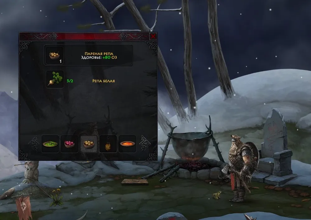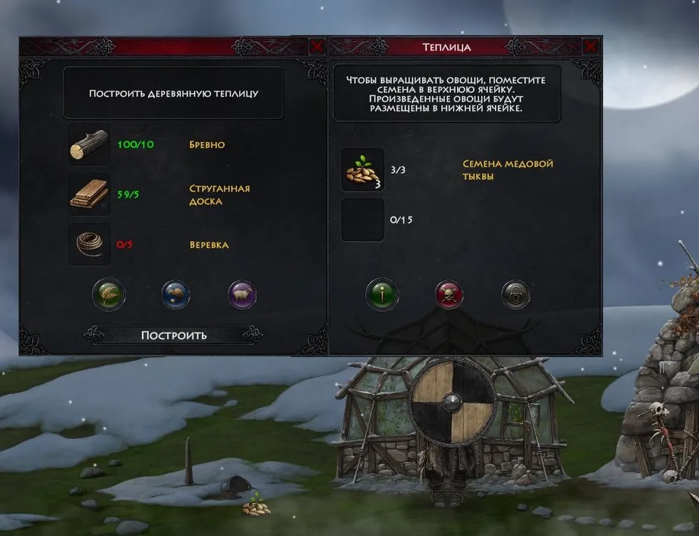 Из дикорастущих овощей и ягод полезнее всего красная репа, морковь, бобовые, хурма и медовая тыква. Очень желательно, чтобы кроме самой медовой тыквы викингу попались её семена: этот овощ приготавливается на кухне первого уровня и даже в полевом котле, а восстанавливает сто единиц здоровья.
