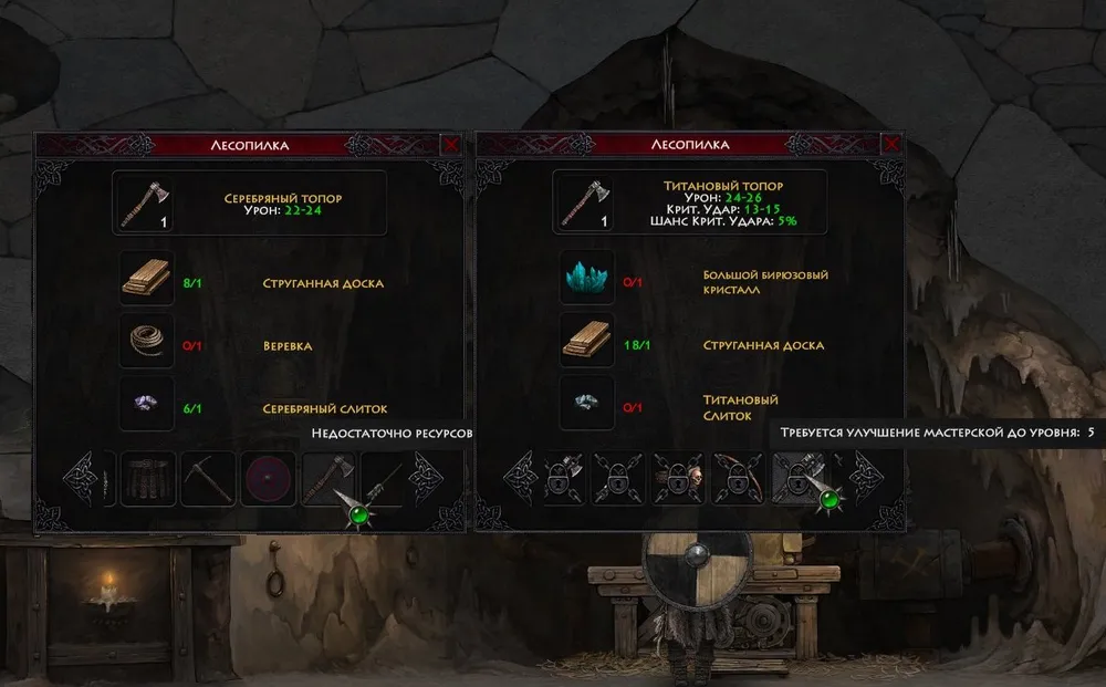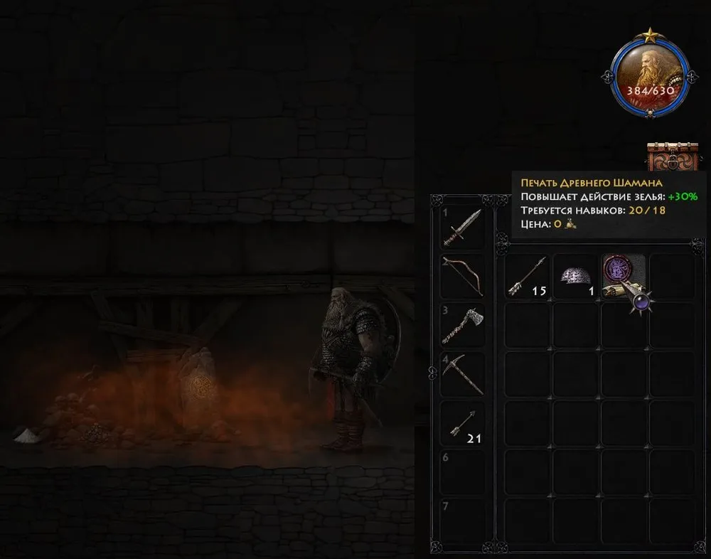 Кстати, раньше ужасно много времени занимал спуск до необходимого уровня (подняться можно мгновенно, заплатив пять монет). И чем глубже герой зарывался, тем дольше приходилось спускаться, времени на перемещения уходило больше, чем на работу. Теперь - фанфары! – у викинга есть портал! Точнее, свиток портала. Активируем его на нужном уровне и перемещаемся в мастерские.