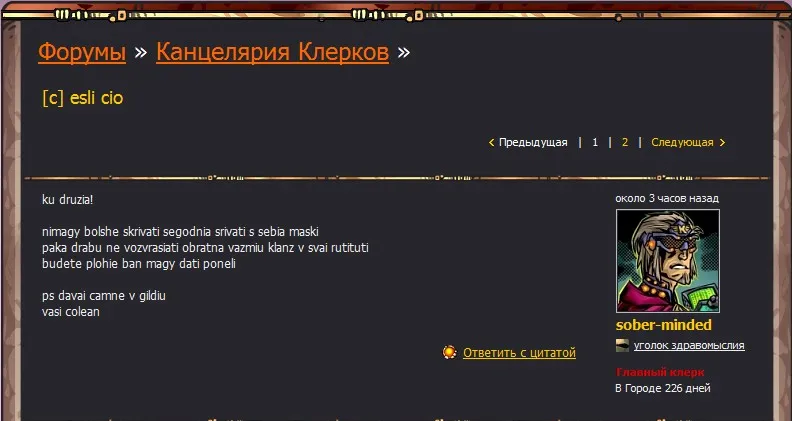И еще некоторым игрокам было выслано приглашение в личную гильдию sober-minded'а уголок здравомыслия