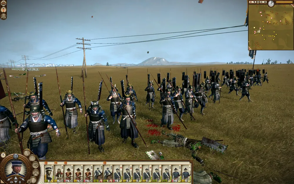 Приметы времени: самураи атакуют врага на фоне телеграфной линии.