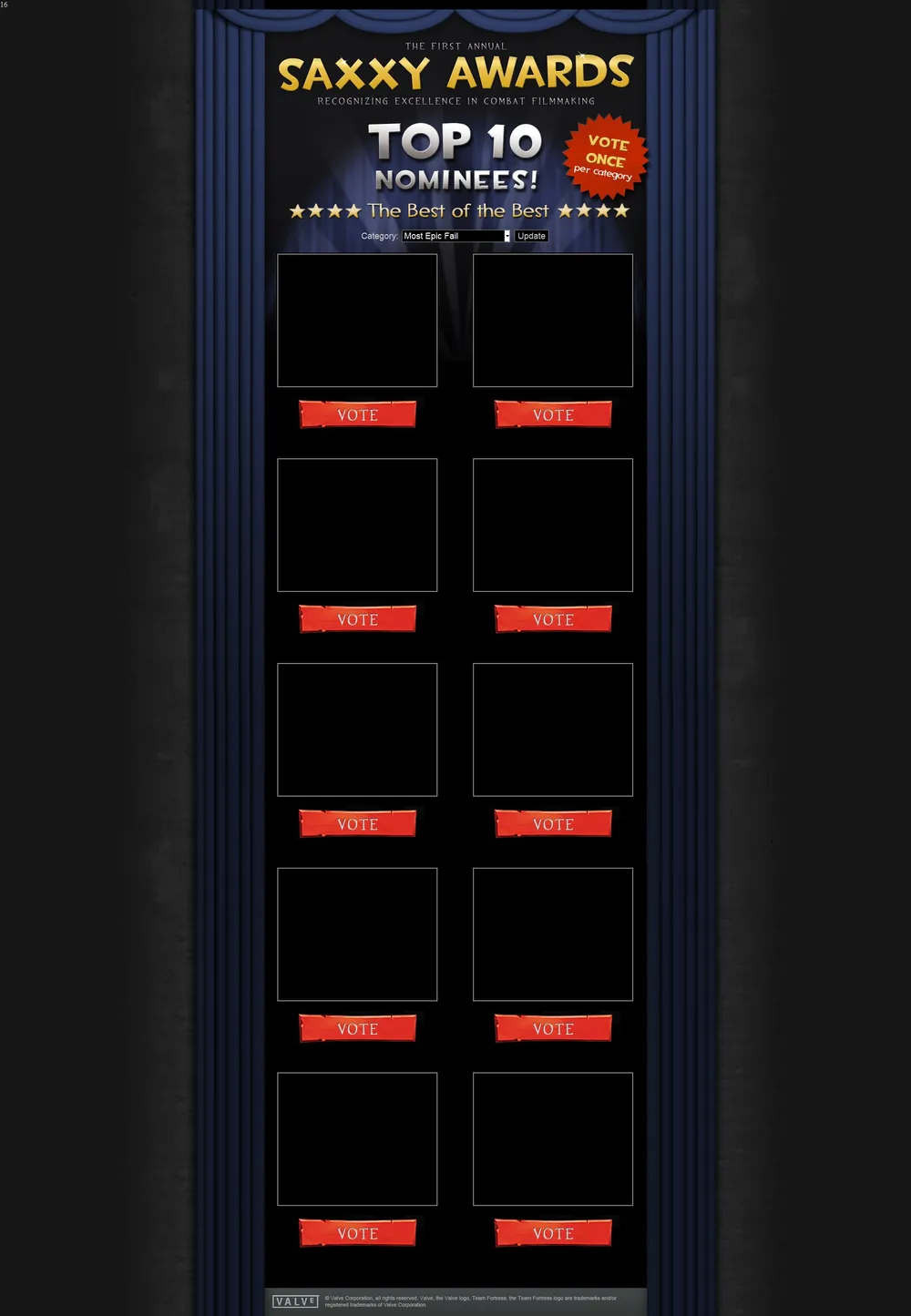 Номинанты на конкурс Saxxy Awards анонсированы, и теперь Вы сможете принять участие в определении победителя, для этого вам необходимо иметь купленную версию Team Fortess 2 на аккаунте, и войти через него вот тут.