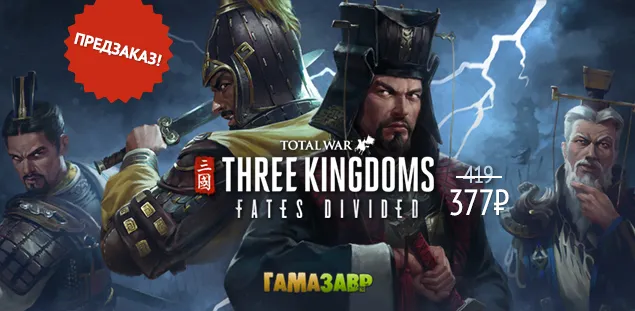Остаются считанные дни до релиза нового крупного дополнения Total War: THREE KINGDOMS - Fates Divided, которое увидит свет уже 11 марта. И до этого дня мы отдаем дополнение со скидкой.