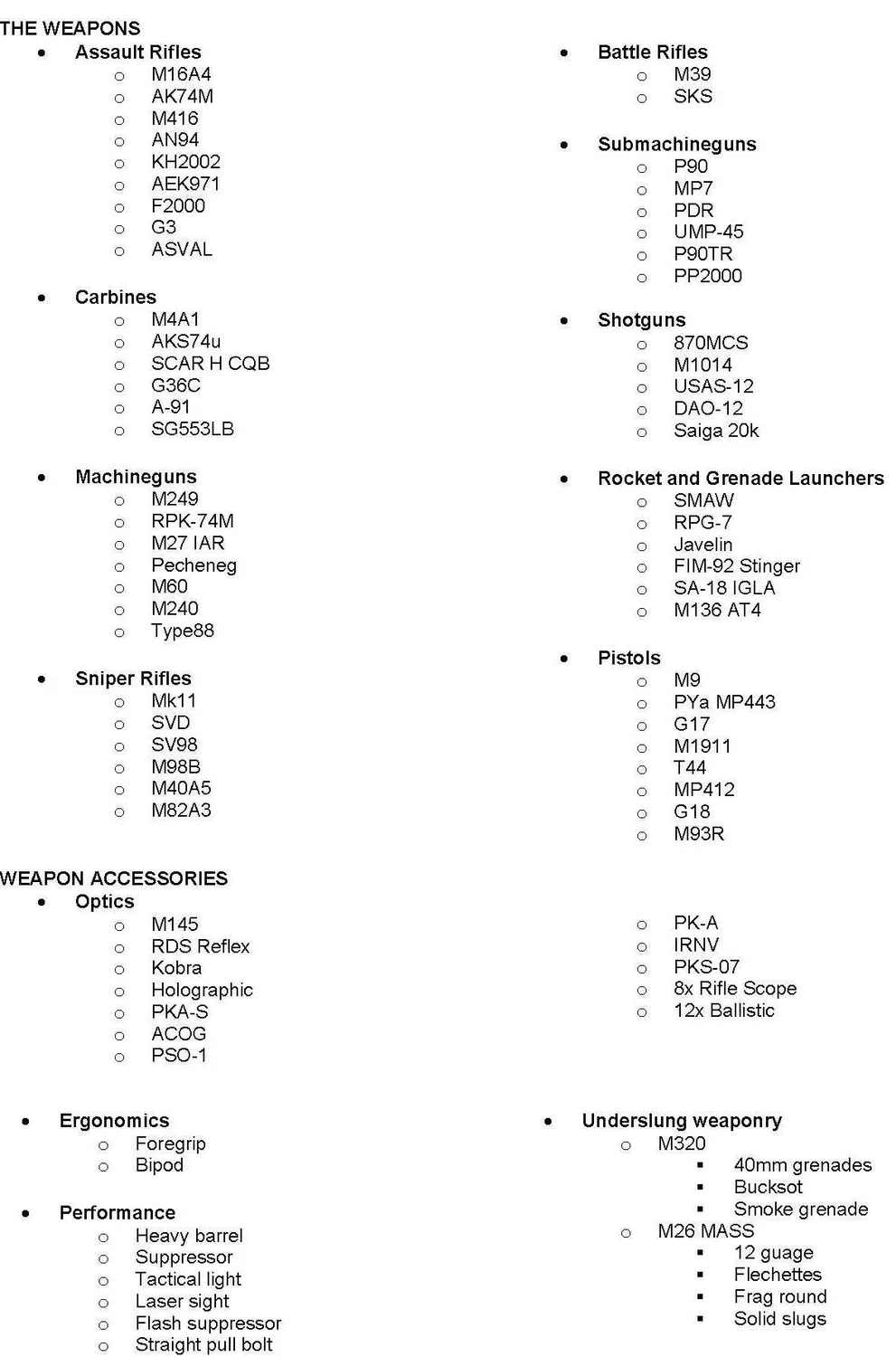 • Все классы получат возможность установки сошек, оптики, лазерного прицела, фонарика и глушителя.