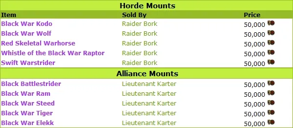 Теперь игроки смогут приобрести ездовых животных за 50,000 очков чести.