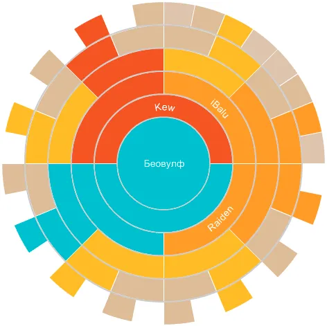 Чем ближе к центру, тем лучше. В центре -- победитель (хорошо видно, что победил Беовулф, встретите на турнире -- лучше сразу сдавайтесь!), дальше финалист, ещё дальше -- полуфиналисты. Если навести на кого-нибудь, показывается подсказка с классом и именем человека (красным -- имя соперника):
