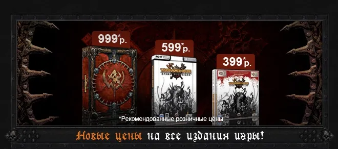 Изменение цен на Warhammer Online: Время Возмездия, которые сделают игру еще более привлекательной. Снижены цены на все виды комплектов игры, стандартное, специальное и даже коллекционное издания! Новые рекомендованные розничные цены никого не оставят равнодушным. Если вы попробовали Войну на вкус, в бесплатной версии игры, и теперь раздумываете над улучшением вашей учетной записи, то сейчас самое время это сделать!