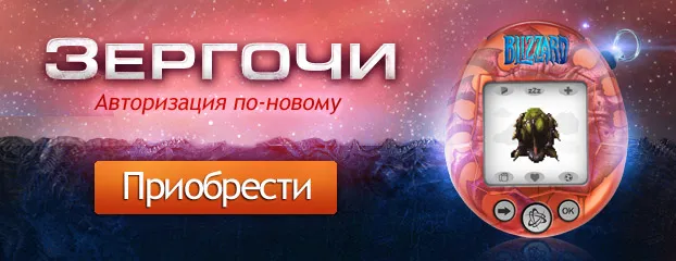"Попрощайтесь со своим старым пыльным Battle.net Authenticator! Вас ждет его новая инкарнация – зергочи! Новая система авторизации от Blizzard Entertainment делает следующий шаг в совмещении технологий виртуальных питомцев и устройств класса «Authenticator» – незабываемые ощущения от процесса авторизации гарантированы! Зергочи станет для вас не только неиссякаемым источником радости и веселья, но и обеспечит полную безопасность вашей учетной записи. Кормите его, играйте с ним, заботьтесь о нем! Помните: чтобы он вырос в настоящего монстра, ему потребуется много-много любви.
