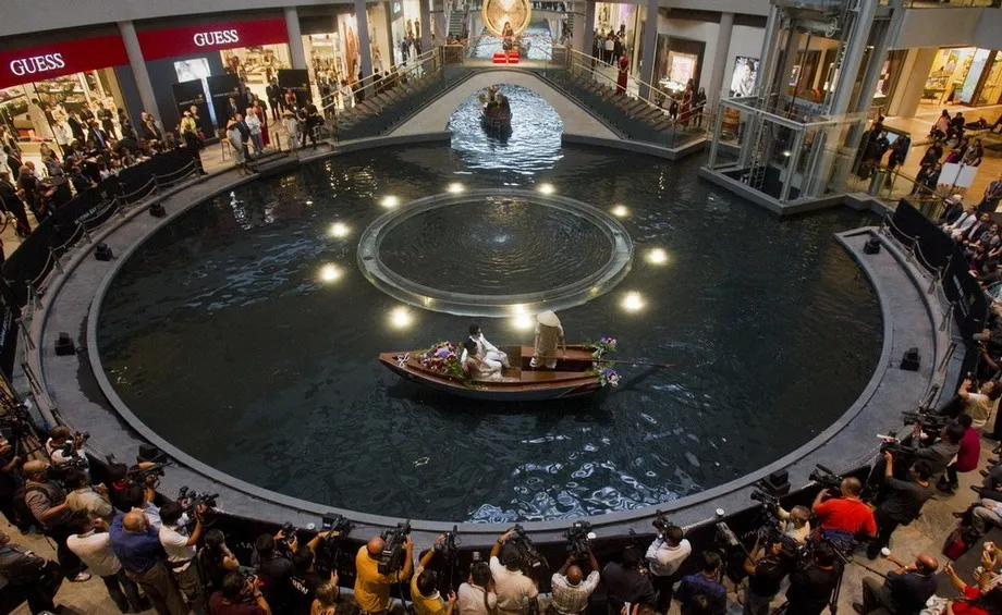 Внутри комплекса располагается 5-звездочная гостиница на 2560 номеров, выставочные павильоны, рестораны, галереи бутиков, театральный зал, спа-центр и самое дорогое в мире казино на 500 игорных столов и 1600 автоматов. Кроме того, здесь имеется заполненный водой канал, наподобие венецианского, по которому плавают гондолы, а над ним переброшены пешеходные мостики. Около отеля построены офисные и торговые помещения под волнистыми крышами.