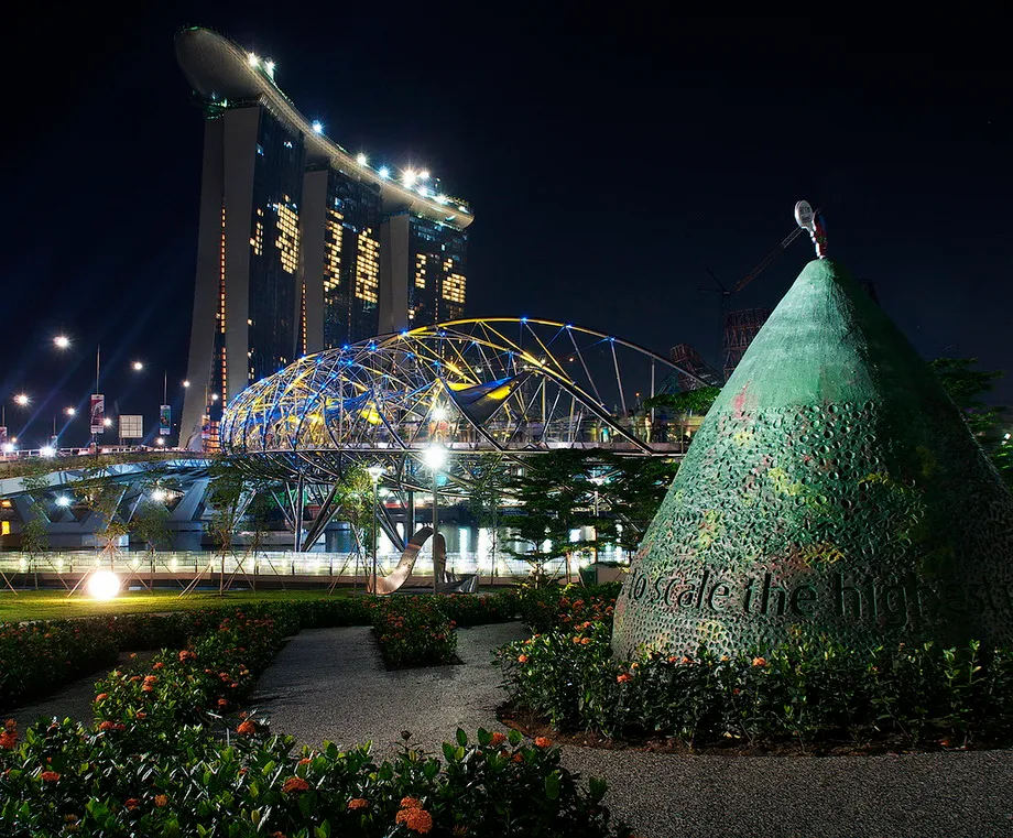 Комплекс обошелся инвесторам в 8 миллиардов долларов. В честь открытия Marina Bay Sands на его небоскребах решили провести первый чемпионат мира по скалолазанию на фасадах зданий.