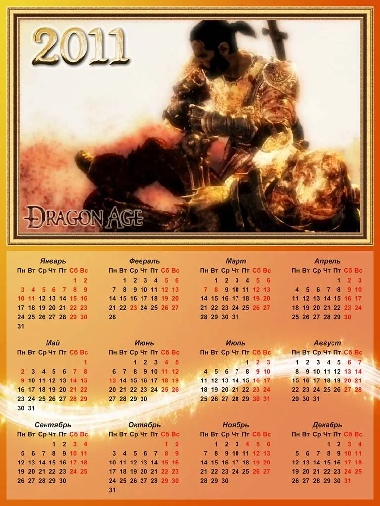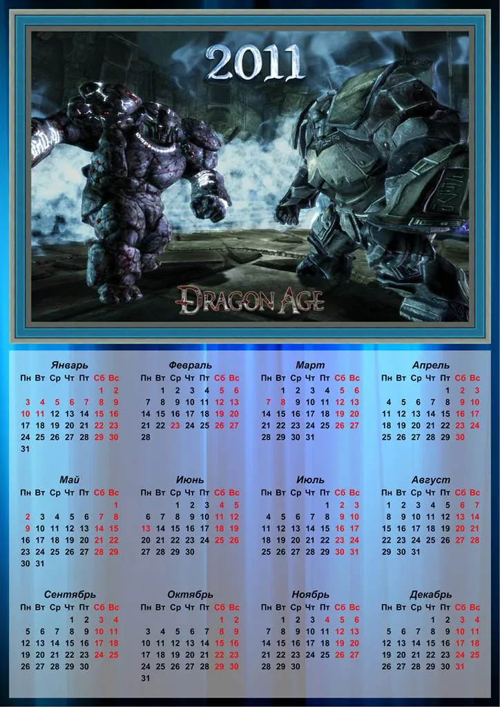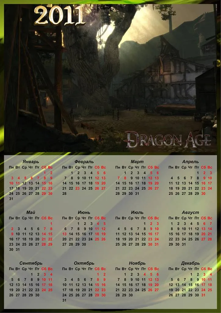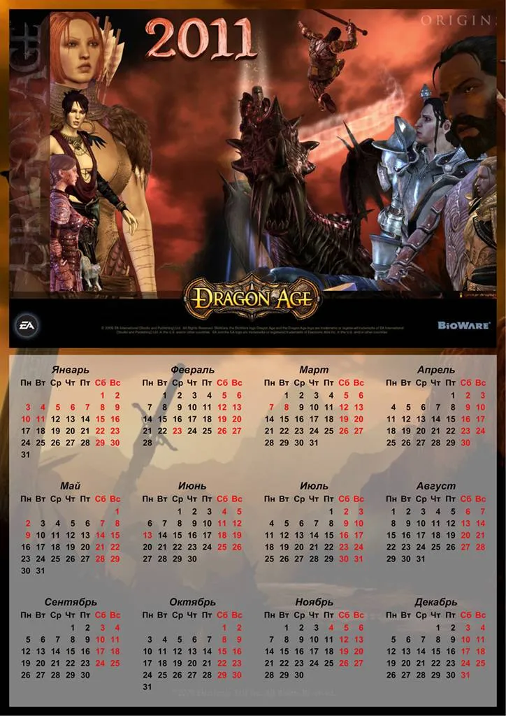 Чтобы поклонники игры Dragon Age и в следующем году могли позволить себе взглянуть на календарь - я представляю вам 10 календарей.