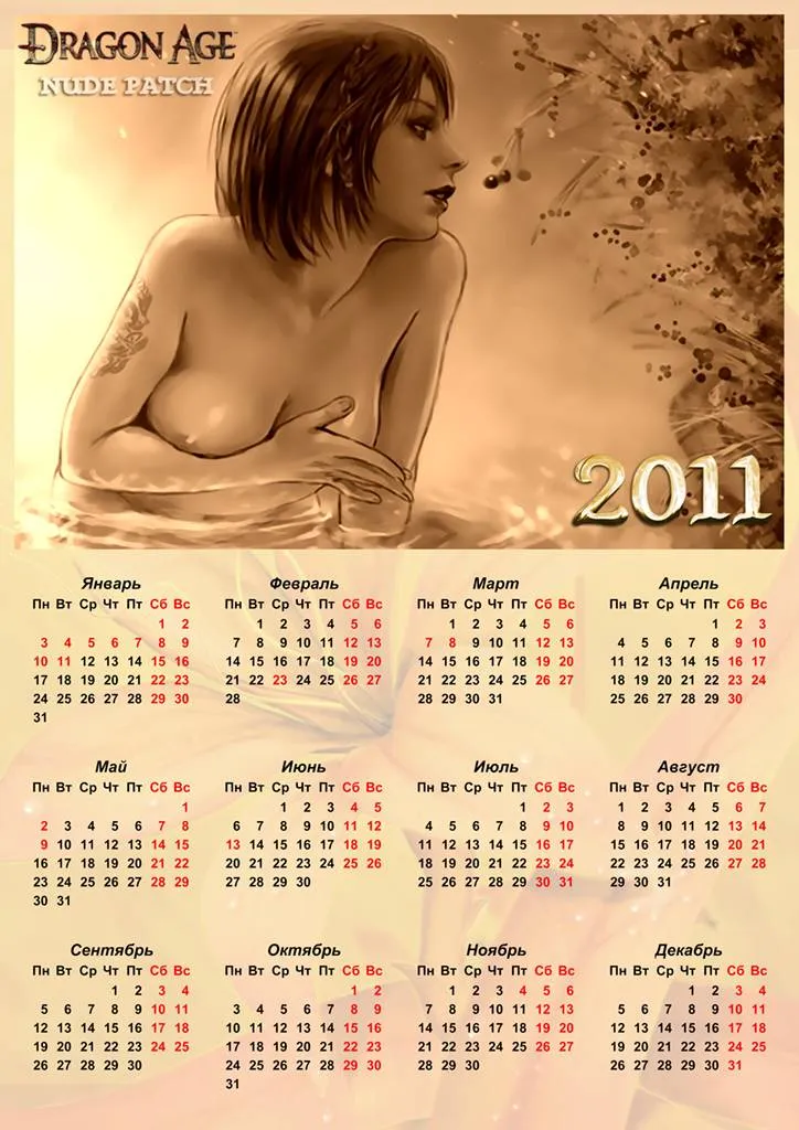 Календари из серии Dragon Age: Nude Patch. Помнится, я выкладывал мод, который делал... Да какая разница, что он там делал...