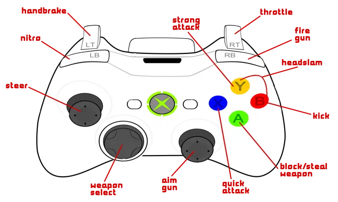 Headslam – ударить головой об руль. Если вы знакомы с файтингами, то примерный аналог – бросок. Такую атаку нельзя блокировать, но для такой атаки надо быть очень близко к врагу.