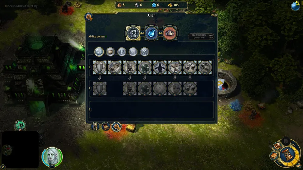 - Realm - пассивные "хозяйственные" абилки (увеличение найденного золота/ресурсов, уменьшение стоимости построек города и т.д.)