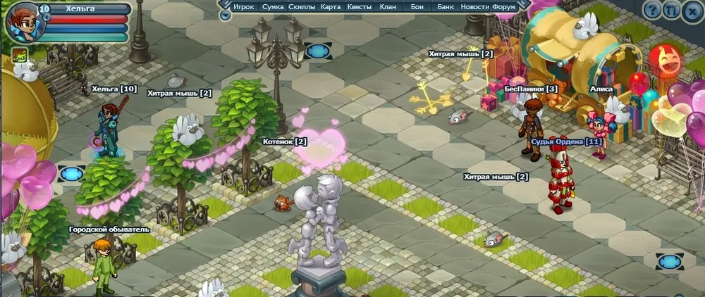 На центральной площади поставлен памятник Влюбленным. А у Алисы полно подарков для самых дорогих и любимых.