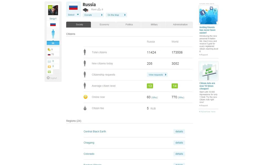 Что из этого выйдет - я не знаю. Вообще когда наши говорят, что мол верните наши исконные земли, мне становиться немного смешно. А вот Канадцем и Американцем не до смеха, им ни русские, ни кто - то ещё земли не вернут. С учётом того, что у нас теперь 24 региона, из которых названия Kansas и Nebraska не исключение, а правило, мне кажется Урал нам особенно и не нужен. Хотя конечно земля лишней не бывает. Вообще ПИС сейчас главная сила в игре, и если их альянс повернётся против нас, то нам долго не жить. Да, конечно у нас было пара бейби бумов и на данный момент в еРоссии проживает 11379 человек, но многие из них новички. Хотя конечно бейби бум дал нам возможность попасть в восьмёрку лучших стран, за что отдельное спасибо нашему бывшему президенту. И опять таки никто не ожидал, что UncleDeD снимет свою кандидатуру с выборов. Ведь именно он был лидером гонки. Именно он сделал бейби бум и сделал Россию такой, какая она есть сейчас. Причём за пару дней до выборов я написал UncleDeD(у) письмо, о том, чтобы взять у него интервью после выборов. Ответа я не дождался до сих пор.