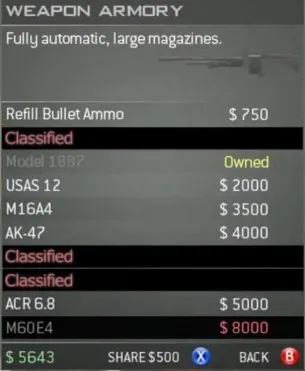 Оружие – боеприпасы и апгрейд оружия (стоимость)