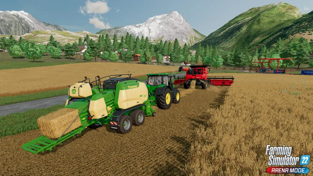 Когда-то подобные соревнования проводились исключительно во время международных игровых выставок, теперь же каждый желающий может попробовать этот режим дома. В нем принимают участие до шести игроков: укладывать квадратные тюки соломы на прицеп необходимо также быстро, как и управляться с высокопроизводительным прессом для тюков в режиме «Арены». Обе дисциплины теперь доступны в разделе киберспорт главного меню Farming Simulator 22.