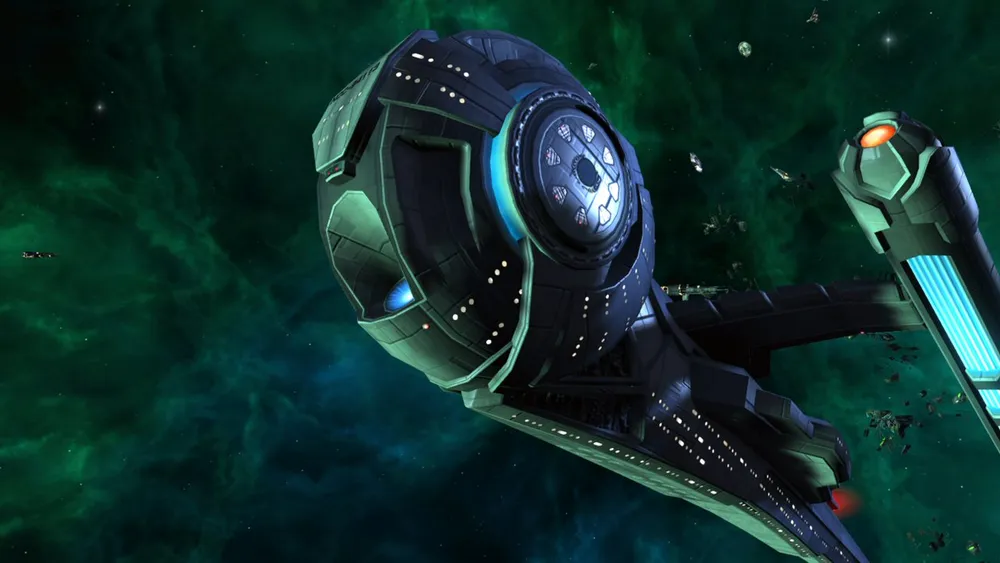 На двух корабли в космосе и на одном игрок делающий какие-то инженерные действия.