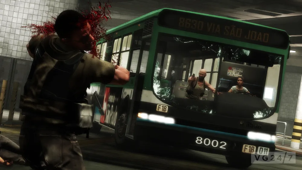 На первом скриншоте мы видим Макса, который попал в голову головореза c приличного расстояния. Также обратите внимание на девушку, которая сидит за рулем автобуса. Судя по всему, это дочь предпринимателя, которого охранял Макс Пэйн. Но это всего лишь моё предположение, увидим в релизной версии.