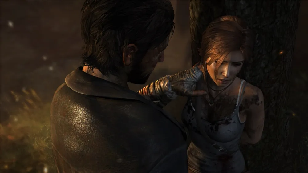 На данном скриншоте показано, что Лару всё-таки настигла забинтованная рука бандита и ей несдобровать, выживет она или нет узнаем из сюжета игры. Но зная что это перезапуск серии Tomb Raider следовательно Лара выкрутится из забинтованной руки этого кровожадного бандита и останется жива.