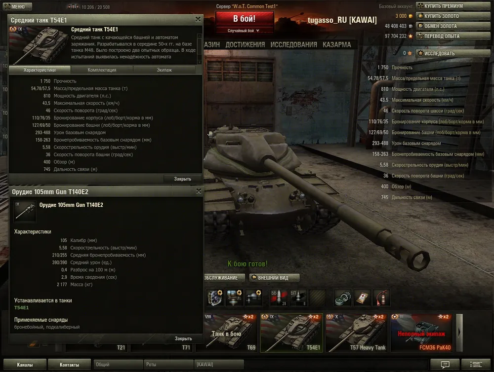 Американский СТ 9. Динамикой и орудием напоминает M46 Patton, с тем отличием что динамика все таки чуть хуже, а орудие имеет барабан. Перезарядка барабана порядка полминуты, что определяет тактику схожую с Т69 - ездить с СТшками, но держаться позади для возможности перезарядки. Приличная альфа в 390 единиц урона и брабан на 4 снаряда могут огорчить любого соперника, главное чтобы рядом были союзники которые прикроют во время перезарядки. Идеален для взводной игры - сочетание характеристик орудия позволяет 2-3 машинам ефективно продавливать фланги.